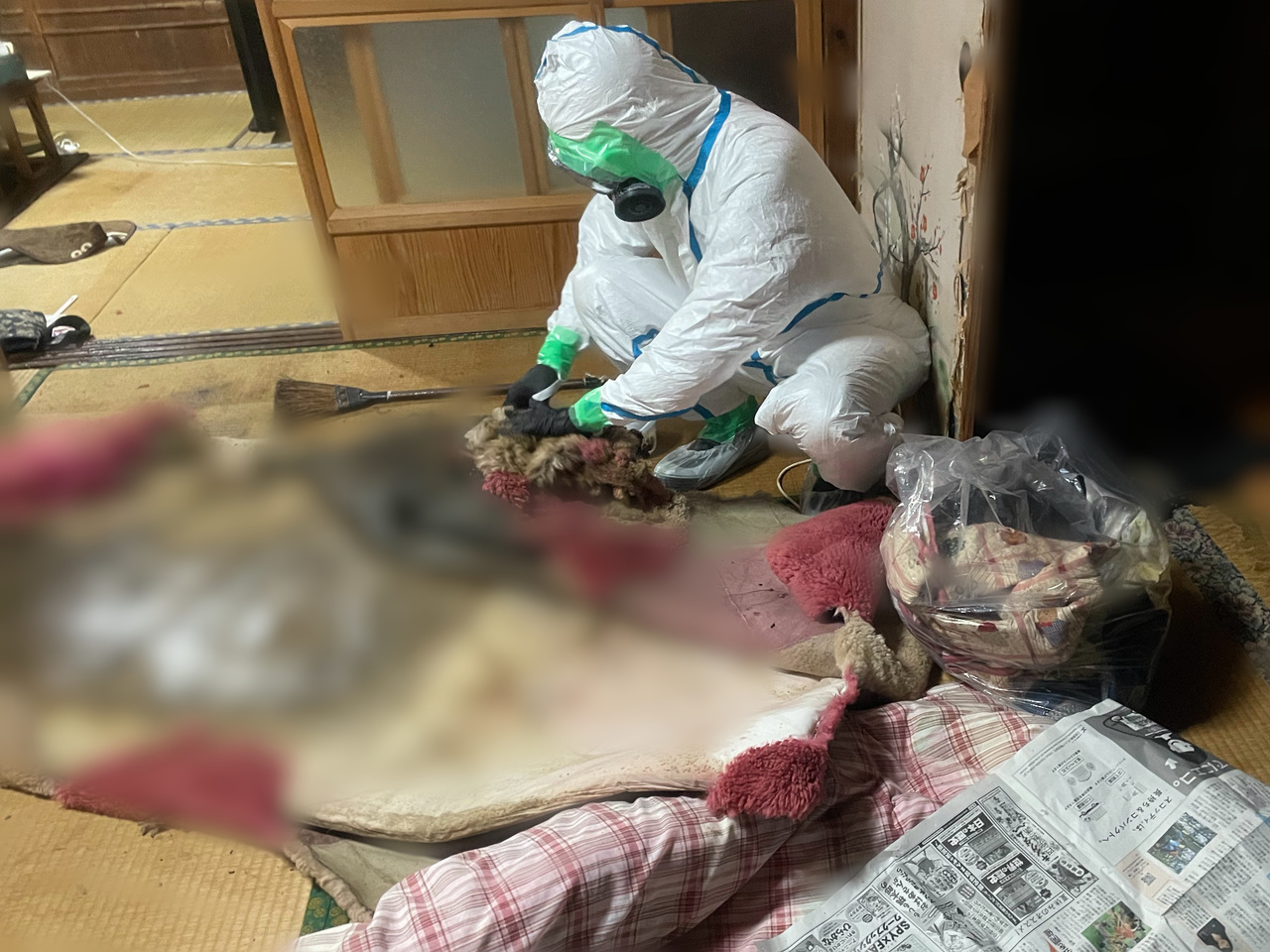 依頼されたのは従姉妹の方で、ウジ虫等の駆除と布団や畳、汚染箇所の撤去処分をお願いしますということでした。